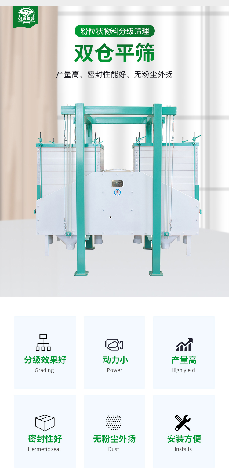 FSFS系列雙倉平篩適用于各種粉粒狀物料的分級篩理,廣泛用于玉米加工廠、玉米淀粉廠、面粉廠、飼料廠等的分級篩理;是非常理想的顆粒物料分級篩理設備。本設備動力小,產量高,密封性能好,無粉塵外揚。