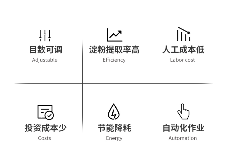 一、 木薯加工生產(chǎn)成套淀粉設(shè)備的生產(chǎn)工藝流程清洗的目的是去砂、去土、去皮、減少淀粉灰份,也便于下道工序的工作。在輸送的同時進行清洗,所以上料要均勻,太多了轉(zhuǎn)籠內(nèi)沒有空隙,木薯就無法滾動,達(dá)不到去皮和清洗的目的。太少了就達(dá)不到生產(chǎn)量。操作人員還要注意用水的壓力,水壓過低帶不走泥沙,一般水壓不能低于0.25Mpa,時刻注意轉(zhuǎn)籠和輸送機的運轉(zhuǎn)情況,不能形成原料在此過程中積壓。機器一般工作七天加一次潤滑油。
